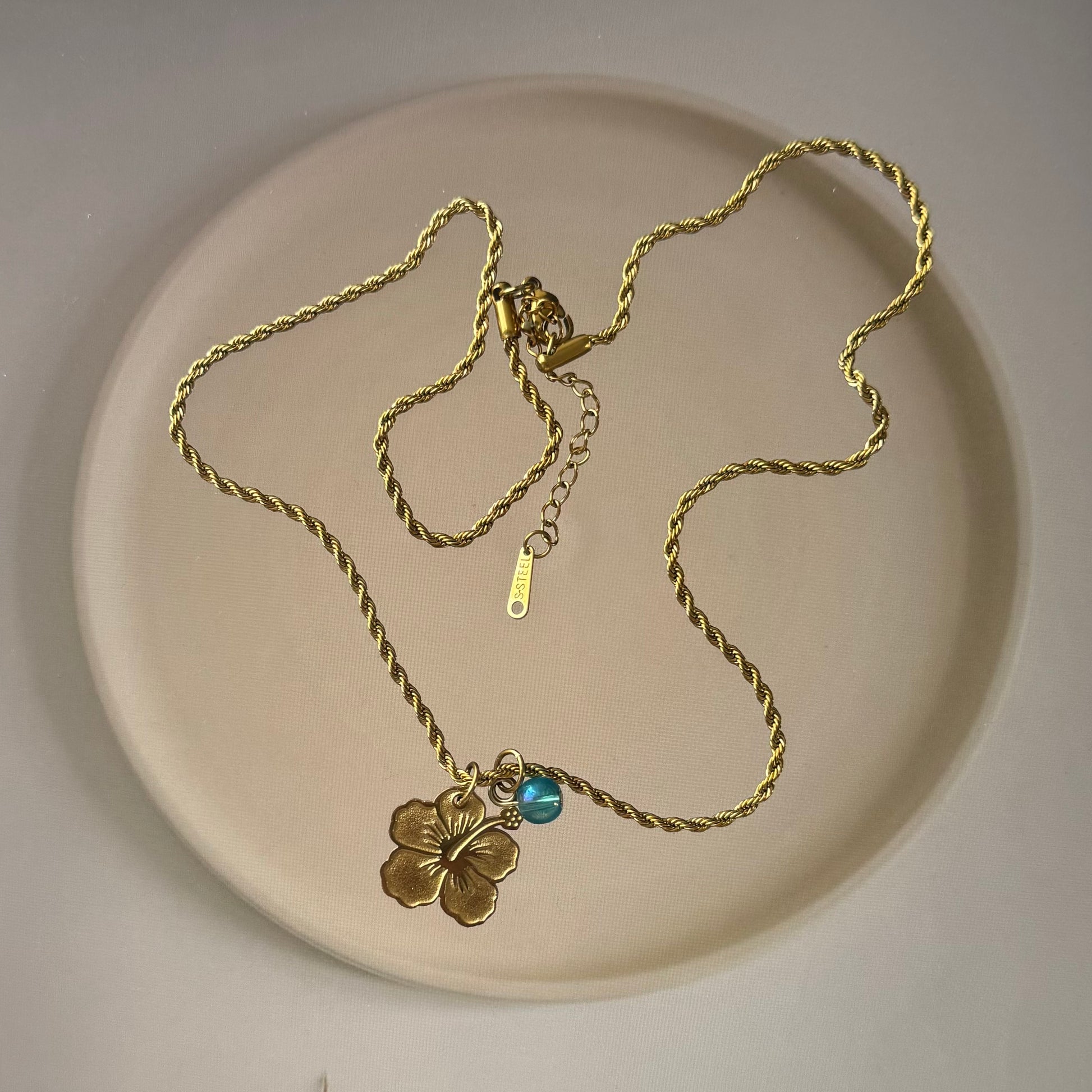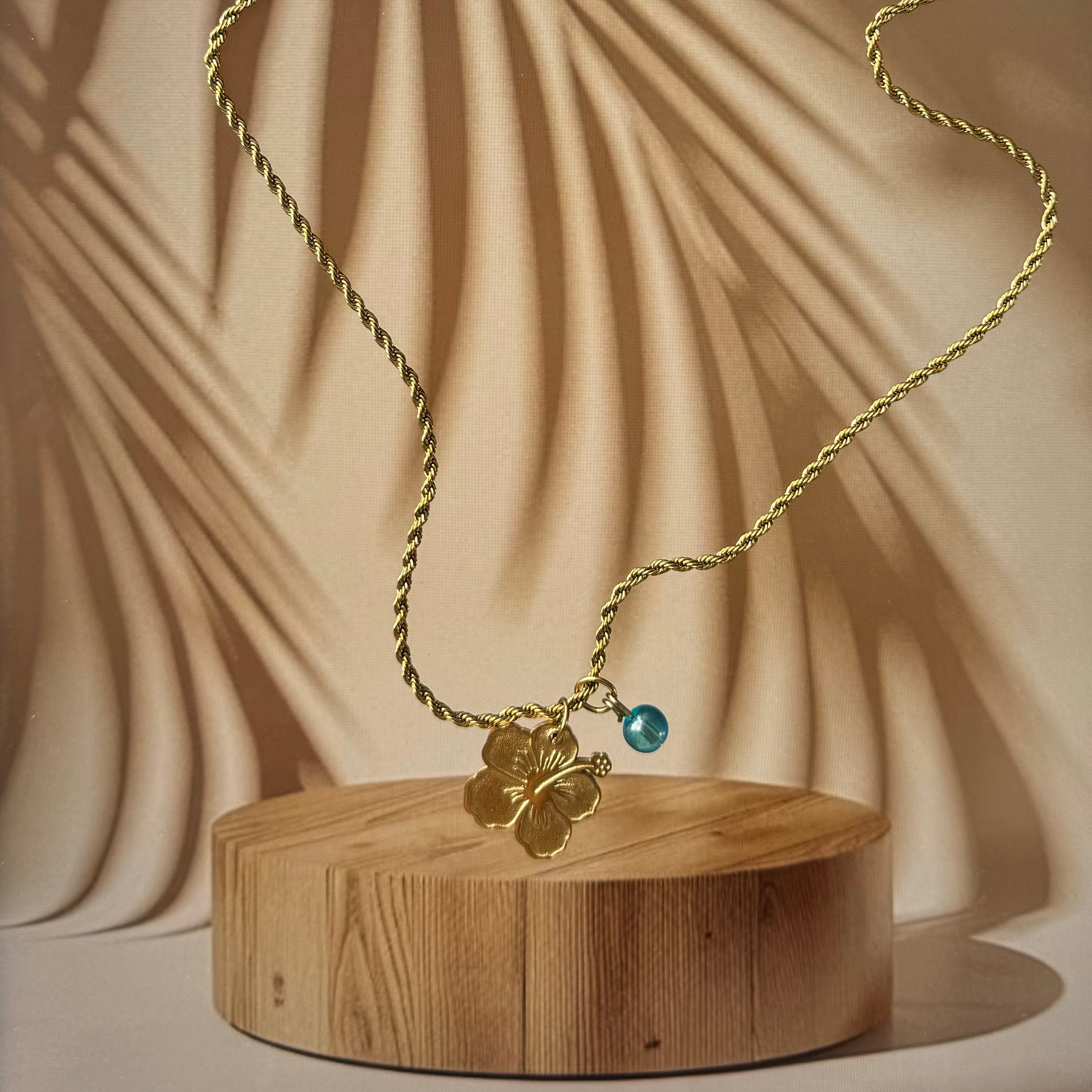 Inspirado en el West Sunset de Rincón, este vibrante collar de oro tiene un toque de azul claro que representa la playa y el color de la bandera original de Puerto Rico de “El Grito de Lares”.